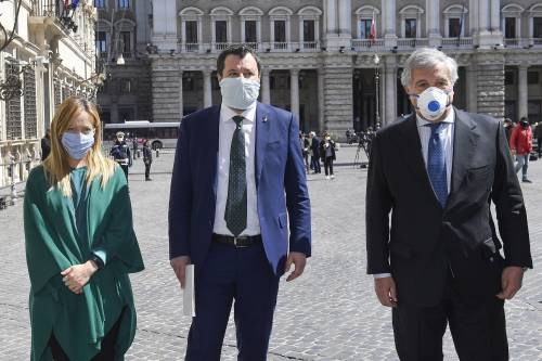Flash mob silenziosi, cento piazze collegate, a Roma un enorme tricolore, ma tante bandiere italiane a fare da filo conduttore dell'evento anche nel resto del Paese. Sarà un antipasto, un primo assaggio di un vero ritorno alla politica di strada la manifestazione "diffusa" del centrodestra che si svolgerà oggi, in coincidenza con la Festa della Repubblica, in tutta Italia. Un primo appuntamento in vista della vera adunata che prenderà corpo il 4 luglio al Circo Massimo quando sarà possibile - o almeno si spera - tornare ad adottare le modalità classiche di una normale adunata politica, con presenze non (troppo) contingentate e un palco da cui esporre le proprie idee.